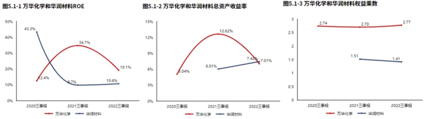 2022三季报万华化学ROE19.10%,较2021三季报减少15.56个百分点,股东回报水平降低;其中,2022三季报万华化学总资产报酬率7.01%,较2021三季报减少5.61个百分点,总资产回报水平降低。2022三季报万华化学权益乘数2.77倍,较2021三季报提高0.07倍,股东权益撬动资产的能力基本稳定。
