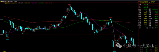 今天原油又大跌了。主力合约2506合约收盘跌4.98%。
