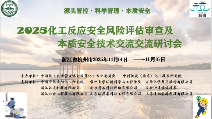 2025 年 11 月 14-16 日,杭州市举办 “2025 精细化工反应安全风险评估研究及本质安全技术交流研讨会”,会议将邀请行业专家、学者及企业相关负责人,结合《精细化工反应安全风险评估机构能力评定指南》(TCCSAS 056—2025)与《精细化工企业安全管理规范》(AQ3062—2025),总结高危领域成熟做法、借鉴先进技术理念,围绕 “源头管控・科学管理・本质安全” 主题探讨交流相关热点难点问题。